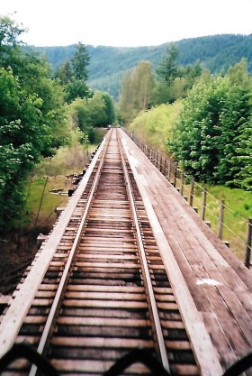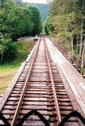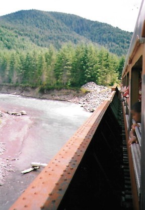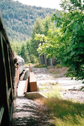 Another view of the Nisqually River. We arrived at Elbe but did not stray far. The engine ran around the train for the return trip and I stayed in the "Clopen", the "closed-open" car that used to be British Columbia Railway's "Brandywine Falls". This gave me an excellent vantage point from the rear of the train.