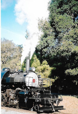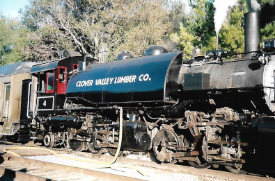 It was built in 1924 for the Clover Valley Lumber Company and operated out of Loyalton, California. In late 1956, the Clover Valley Lumber Company sold out to the Feather River Lumber Company, but the rail operation remained the same. In late 1957, the railroad became history when the logging operation switched to trucks. It was at this time No. 4 was sent to the Tahoe Timber Company's mill near Reno for stationary boiler service. That service lasted only a few weeks, but the locomotive was to remain there for many years. Between 1978 and the end of 1985, it was in regular operation at Castro Point. In addition to passenger operation, she was also called on to carry out special operations on occasion. One of these was the movement of the former Western Pacific F7, 918, into our facility at Molate Beach in 1982. On December 1st, 1985, No. 4 had the honour of handling the last passenger movement on the Castro Point Railway. When the engine arrived at Molate Beach, the passenger-carrying days on the railroad were over. In late 1986, along with Heisler 5 and Shay 7, No. 4 was moved out of Castro Point to Niles via a special train movement. The locomotives were put in storage along with other Pacific Locomotive Association equipment. On January 8th, 2005, No. 4 and many other pieces of PLA equipment were moved into Niles Canyon and onto the Niles Canyon Railway. Clover Valley 4 remained in storage until June 2008 when rebuild commenced and she was test=fired on May 5th, 2012 and test run on August 25th, 2012. It has recent received extensive running gear work and is one of the steam locomotives used to power the Niles Canyon Railway's trains.