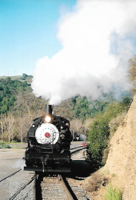 The front of the steam engine as it couples on to our train. After a crew briefing, we started the trip to Niles with runbys on the return.