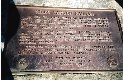 Niles Canyon Railway history plaque.