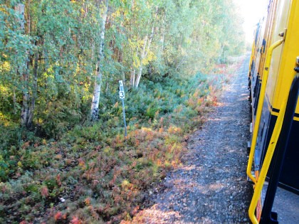 At Birchwood, MP 136.3, we slowed down so everyone could photograph the last Alaska Railroad RDC that was used in work train service - RDC2 701.