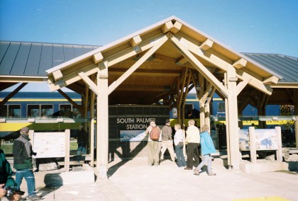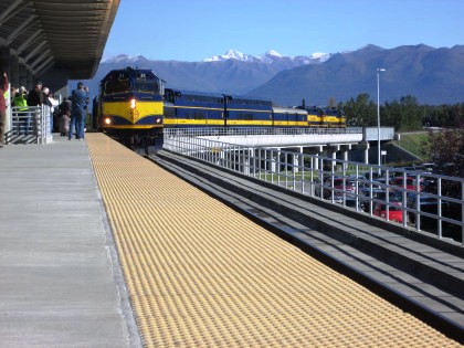 The South Palmer station at MP A4.2, which opened in 2004. Its official name is the Alaska State Fair Intermodal Commuter Centre. We then reboarded for the trip to the Anchorage Airport.