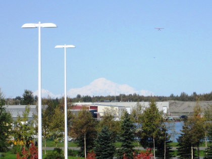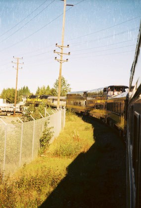 Mount McKinley could be seen today. Then those who then wanted to detrained for a 'false photo runby' here; that is the train would reverse and come forward to re-enter the station but not go past us.