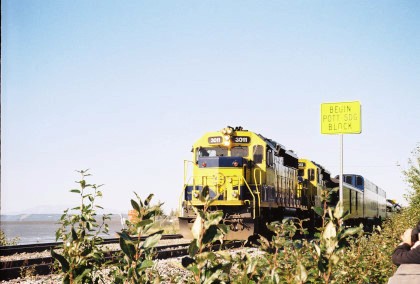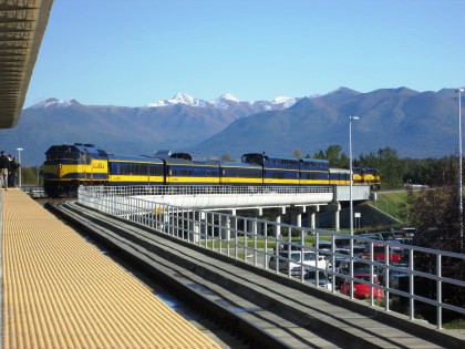 The penultimate day of the convention featured more rare mileage as it was designed to offer a complete look at the railroad's Anchorage-area operations and cover several area rail lines that do not see regular passenger service. Departing from the historic Alaska Railroad station in Anchorage, the train will head north into the Mat-Su Valley to Palmer Junction then turn east toward the Alaska State Fairgrounds at Palmer, a route covered by passenger trains only during the State Fair. The train will then return to Anchorage via the Anchorage Terminal freight-only line and cover the new rail line to the Ted Stevens Anchorage International Airport, used only by charter cruiseship trains. Finally, the train would continue south to Potter and the railway equipment on display there. The customary banquet was scheduled for that evening at the Hilton Anchorage, the convention hotel.