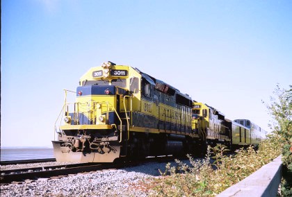 The rear of our train with GP40-2 3011 and GP40-2 3013 at Potter.