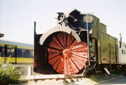 Alaska Railroad rotary snow plough X-900212 on display at the Potter Section House State Historic Park.