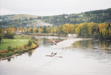 A highlight of the tour is the "wedding of the rivers" where the Chena River and the Tanana River merge, a unique mixing of two different waters. The spring-fed Chena River runs right through downtown Fairbanks. The Tanana River, the world's greatest glacial river, carries tons of glacial silt from the Alaska Range past this point daily enroute to its rendezvous with the mighty Yukon River.