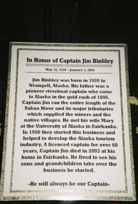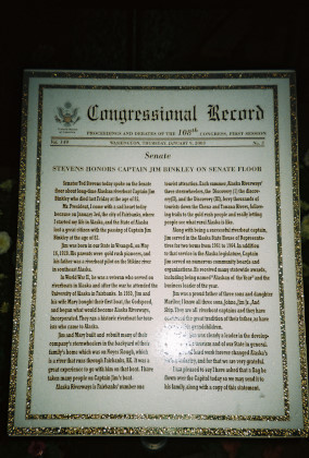 The Congressional Record plaque commemorating the honouring of Captain Binkley by the Alaska Senate.
