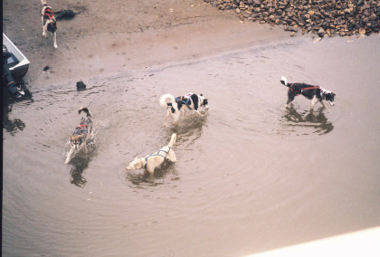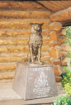 A statue of Granite, the greatest lead dog in Iditarod history, leading Susan Butcher to four victories. Everyone then re-boarded the boat for the remainder of the trip.