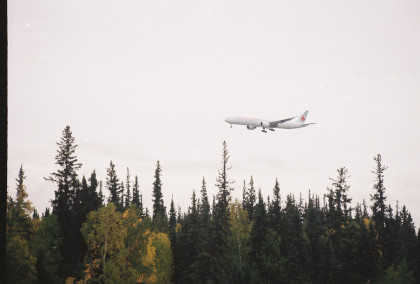 Having lived in Canada (Victoria) for over three decades, I could not help but notice this Air Canada aeroplane on its descent into Fairbanks International Airport.