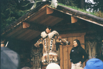 Our next stop was an Athabascan fishing village but before we docked, a salmon carving demonstration was given. Everyone then de-boarded and were split into three groups for talks about the history and lifestyle of the Athabascan people.