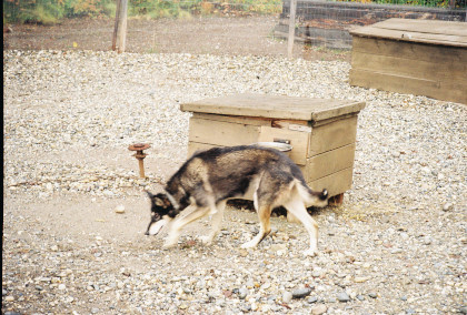 One of the Iditarod sled dogs from Trail Breaker Kennel that ws brought over for people to see.