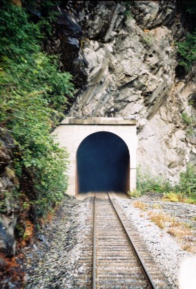 Views of, and in, the tunnels, which help the railway pass through the eastern slope of Spencer Mountain.
