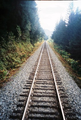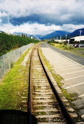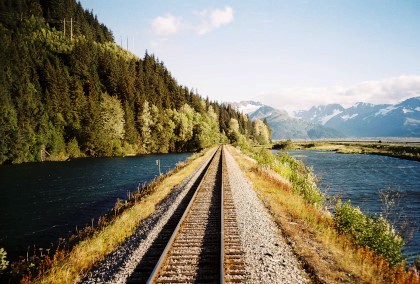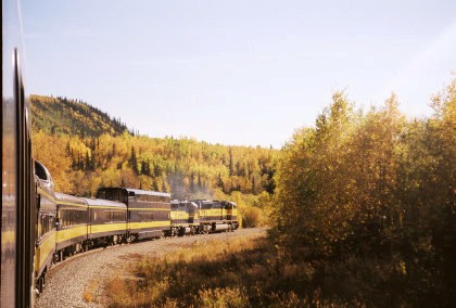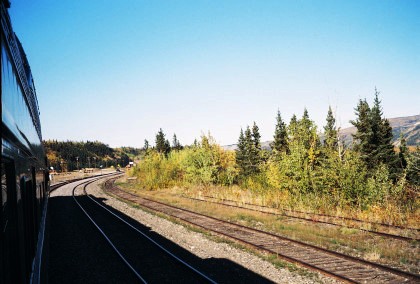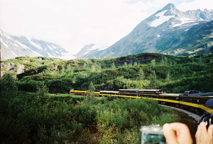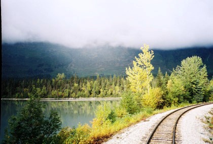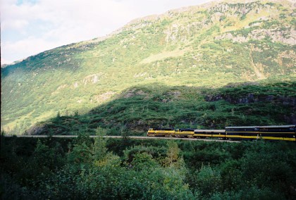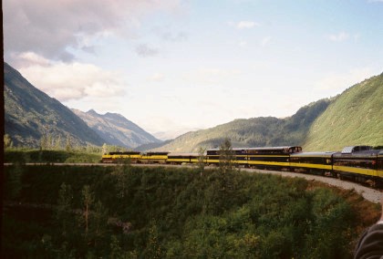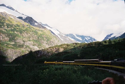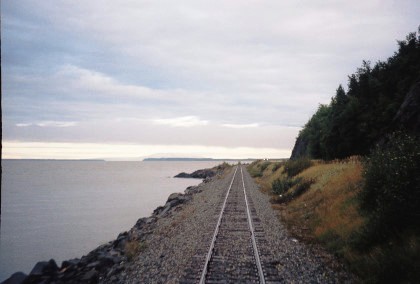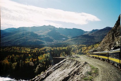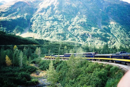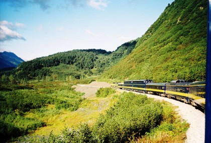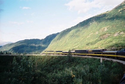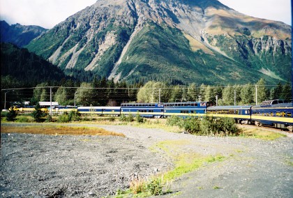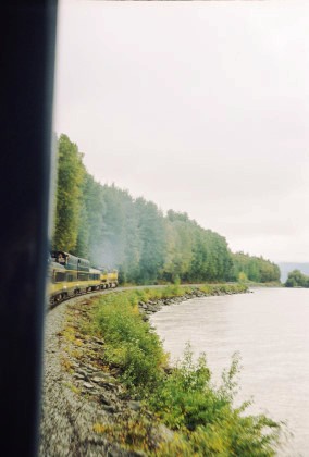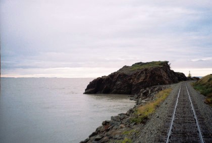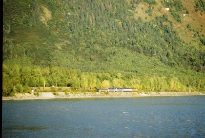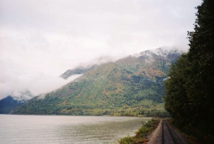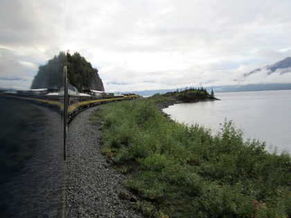 The train curving around Turnagain Arm.