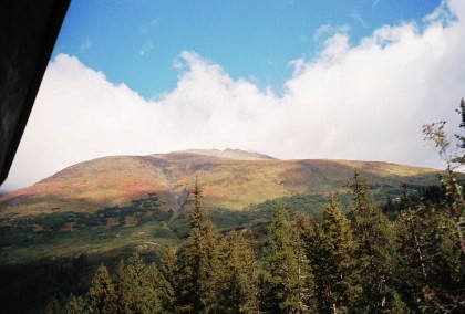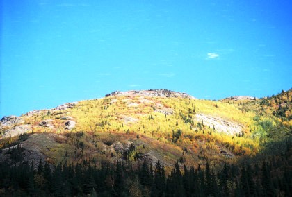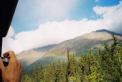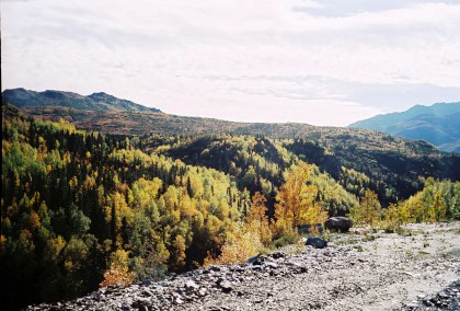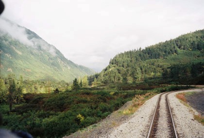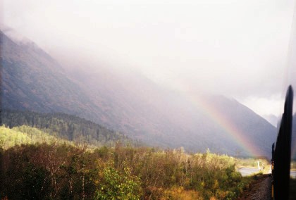 This was the first rainbow I had seen in Alaska. We then came to the scenic highlight of the trip, the Grandview Loop. Grandview, at MP 44..9, is located in one of a number of narrow passes that the old Iditarod Trail used on its route between Seward and Nome.