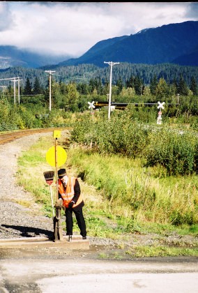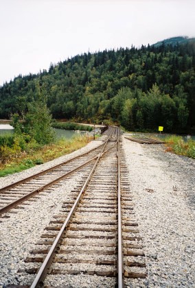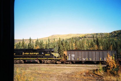 Moose Pass siding, 999 feet long. It was named in 1912 as a station on the Alaska Railroad and is reportedly derived from a postman's team of dogs that in 1903 had considerable trouble gaining the right-of-way from a moose. A photo runby was planned here but I stayed on board this time.