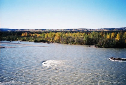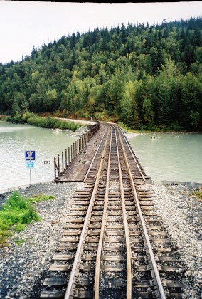 The Placer River at MP 51.8 which is crossed on a 133 foot deck truss plus two 14-foot wooden spans.