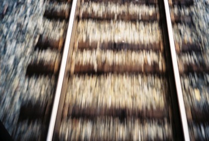 Looking directly down from the rear platform.