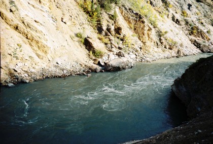 Scenery along the Placer River.I then walked through the train and went to the dome car.