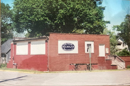 The former Lake Shore and Michigan South / Detroit, Toledo and Milwaukee station, built 1885. It was closed to passenger and freight traffic by 1930 and moved to the current location to save it from demolition in 1986.