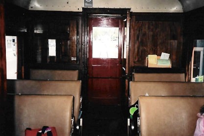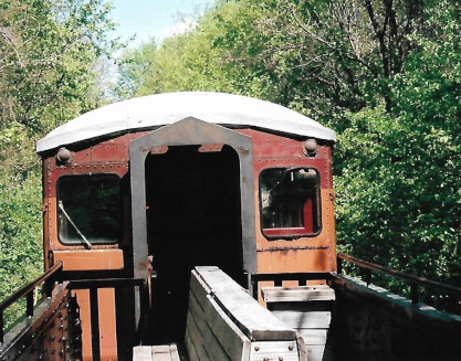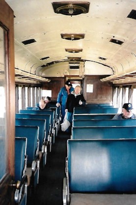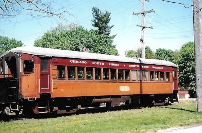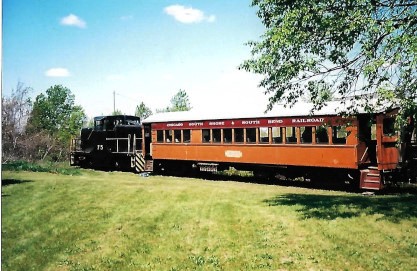 Chicago, South Shore and South Bend Railroad coach 1 built 1926 which was the rear of our train, consisting of SMRS 44 ton switcher 75, Penn Central caboose 19882, New York Central pipe gondola open car DC 4 and Chicago South Bend and South Shore coach 1. I then boarded the train.