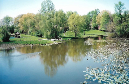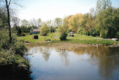 Crossing the tranquil and beautiful Red Millpond, a lake created by the River Raisin in 1907 with the construction of the Tecumseh Dam. This was Milepost 11.5.