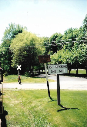 Sign for Yard Limit and Railroad Crossing One Mile as we enter Tecumseh.