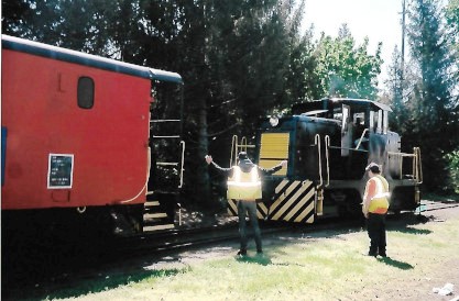 SMRS 44 ton switcher 75 (nee Western Maryland 45) switching at the small yard and coupling up to the caboose in readiness for our trip.