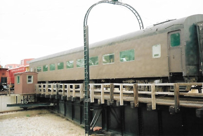 On the turntable was the yard switcher and Great Lakes Central coach 5447 (ex. VIA 5447 1978, exx. CN 5447 1968, exxx. CN 32352, nee CN 5447).