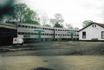 Two of the six former Metra (originally Chicago, Burlington and Quincy) bi-level cars in the Great Lakes CEntral yard for the proposed Detroit to Ann Arbor service.