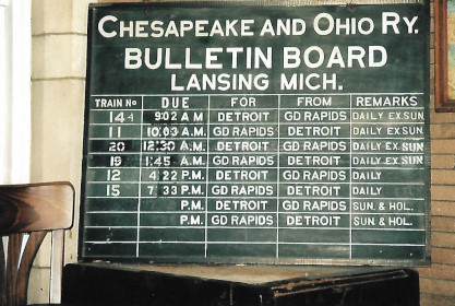 A Chesapeake and Ohio Railway bulletin board inside the station.