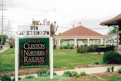 The Clinton Northern Railway sign outside the St. Johns station.
