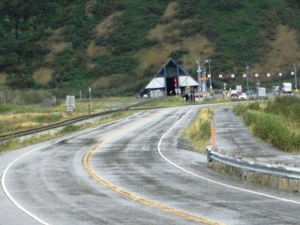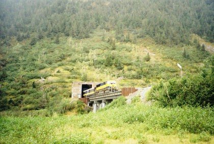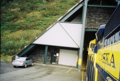 Entering the Whittier Tunnel, also known as the Anton Anderson Memorial Tunnel. It passes under Maynard Mdountain and is the second longest highway tunnel and longest combined rail and highway tunnel in North America. The rail line was originally opened on April 23rd, 1943, linking Whittier to the Alaska Railroad's main line at Portage In the mid 1960s, the Alaska Railroad began offering a shuttle service for automobiles through the tunnel between Whittier and the former town of Portage. As traffic to Whittier increased, the shuttle became insufficient, leading the 1990s to a project to convert the existing railroad tunnel into a one-lane, combination highway and railway tunnel. It opened on June 7th, 2000. Traffic is scheduled in twenty minute blocks - twenty minutes each for eastbound highway traffic, westbound highway traffic and the Alaska Railroad.