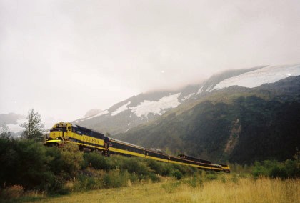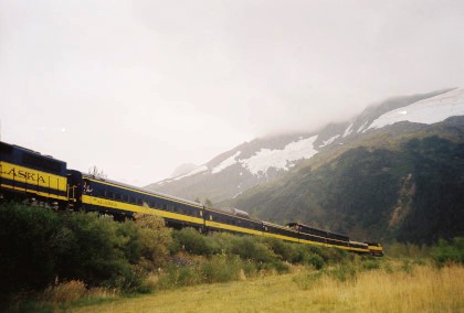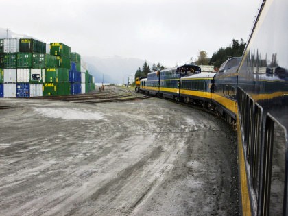 Today our Alaska Railroad train would follow the route of the summer time "Glacier Discovery" from Anchorage to the former military port town of Whittier. Turnagain Arm would be travelled before turning east into the mountains, and the passage through the Anton Anderson Memorial Tunnel under Maynard Mountain. At Whittier, the train will pass the station and venture into the port area where barges from Seattle and Prince Rupert connect the Alaska Railroad to the rest of North America's rail network. On the return trip to Anchorage, a side trip south to Spencer would occur.