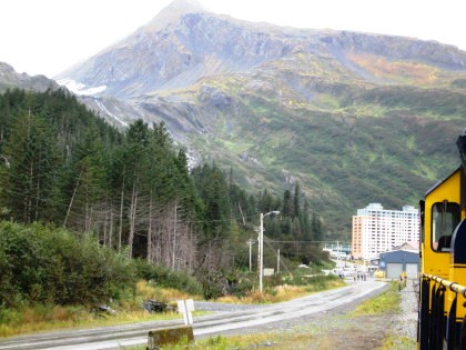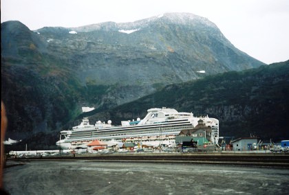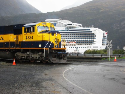 As the train entered the Port of Whittier, the cruise ship here was the Diamond Princess.