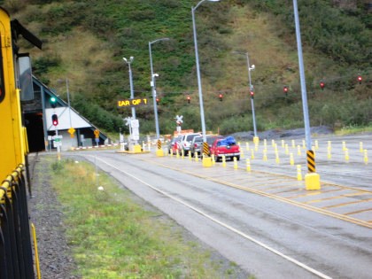 When we arrived at the Anton Anderson Memorial Tunnel, we had to wait our turn to go through.