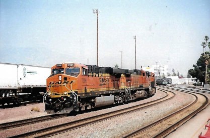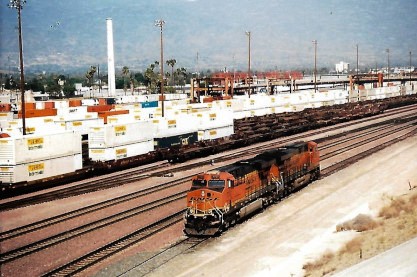 BNSF motive power at San Bernardino shops, now a container terminal but originally the site of one of Santa Fe's major shop complexes.