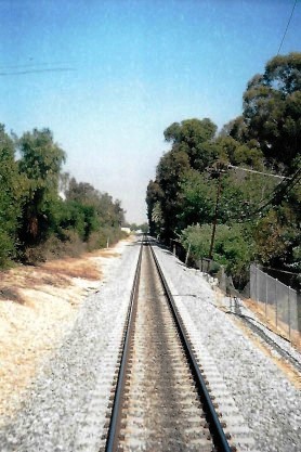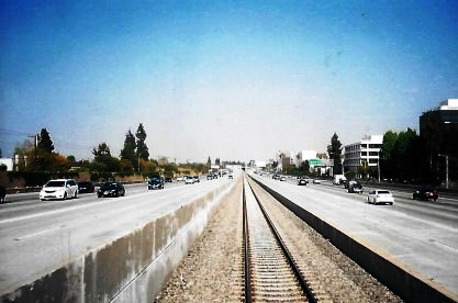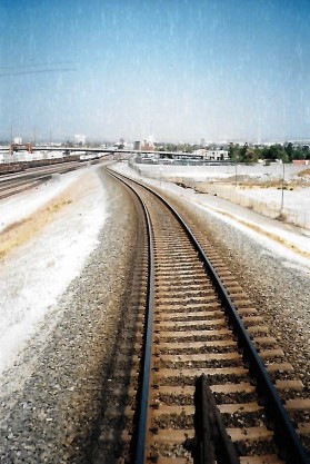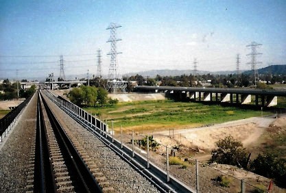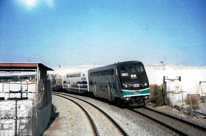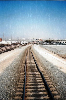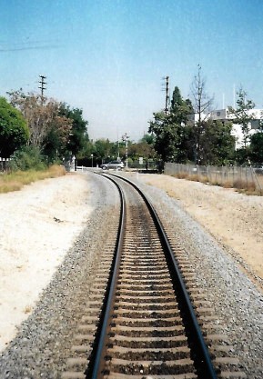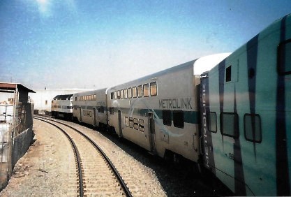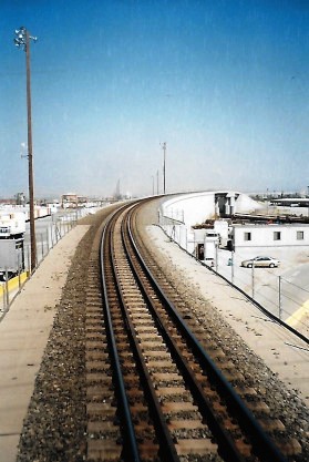 Going up on the flyover that carries Metrolink over the Sante Fe and Union Pacific tracks.