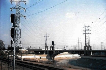 Santa Fe 3751 leading the excursion train over the Los Angeles River as the trip nears an end.
