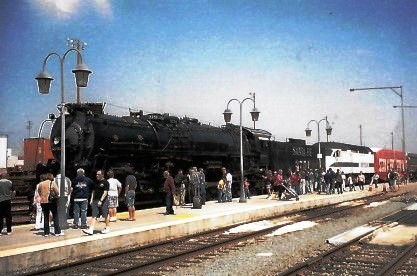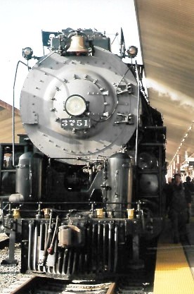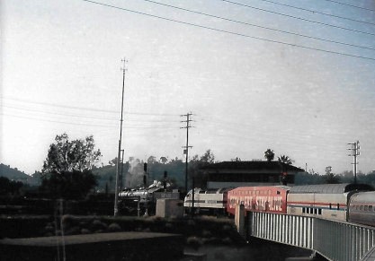 Santa Fe 4-8-4 3751 with part of the train at San Bernardino.