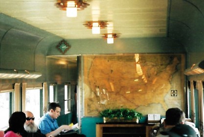 Santa Fe lounge-barber shop-dormitory car 1370 "Acoma" built in 1937 for the Super Chief was also in the consist.