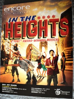 Before his hit show "Hamilton", Lin-Manuel Miranda wrote "In The Heights" which debuted on Broadway in 2008. The 5th Avenue Theatre's 2010-2011 season included this show, which while different and rather more modern than I am used to, was enjoyable to see.