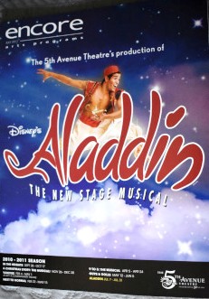 "Aladdin" has had several theatrical iterations over the years. It was first a 1992 Disney animated film with music by Alan Menken, lyrics by Tim Rice and Howard Ashman. It then became a musical which had its premiere at the 5th Avenue in July 2011 (this performance), was re-developed and went to Broadway in 2014. I had liked 'A Friend Like Me' and 'Prince Ali' from the soundtrack and really enjoyed this production.