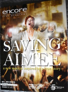Another of the world premieres that the 5th Avenue was involved in was "Saving Aimee", the story of Aimee Semple McPherson, written by David Pomeranz, David Friedman and Kathie Lee Gifford. When it transferred to Broadway the following year, it was renamed "Scandalous", and while it did not fare very well, it was nominated for two awards.