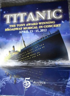 April 2012 marked a century since the Titanic disaster. A 1997 musical by Maury Yeston was the basis for a special concert at the 5th Avenue Theatre on April 15th, 2012.