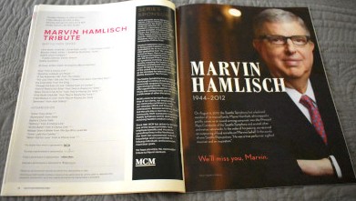 A special tribute to the late Marvin Hamlisch by the Seattle Pops had a one-time airing at Benaroya Hall on February 24th, 2013. Bob and I attended this moving event.