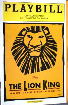 A trip to San Fransisco over Memorial Day weekend in 2004 gave us the opportunity to see Julie Taymor's musical "The Lion King". We were very impressed at the cleverness of the choreography and scenery.