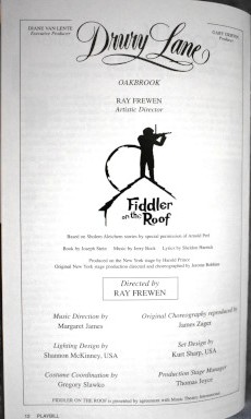My first time in Illinois over Independence Day week 2004 included a visit to Oakbrook Terrace and the dinner and theatre combination at Drury Lane Theatre to see Jerry Bock and Sheldon Harnick's 1964 show "Fiddler On The Roof".