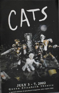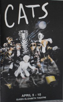 A 1988 field trip with the St. Margaret's School Drama Class to Vancouver, British Columbia was to see "Cats" at the Queen Elizabeth Theatre. This was when I learnt that there was not only the program but a souvenir brochure of the show. From this point on, I would always buy the souvenir brochure when available.