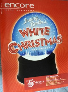 "White Christmas", the 1954 musical by Irving Berlin, was written as a musical in 2004. The 5th Avenue Theatre chose this as their Christmas show in 2006 and it was a hit.
